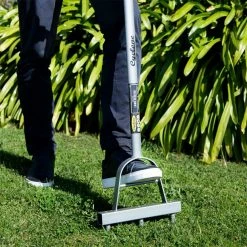 - Evenly aerates lawns by removing plugs of soil to aid water and fertilizer penetration.